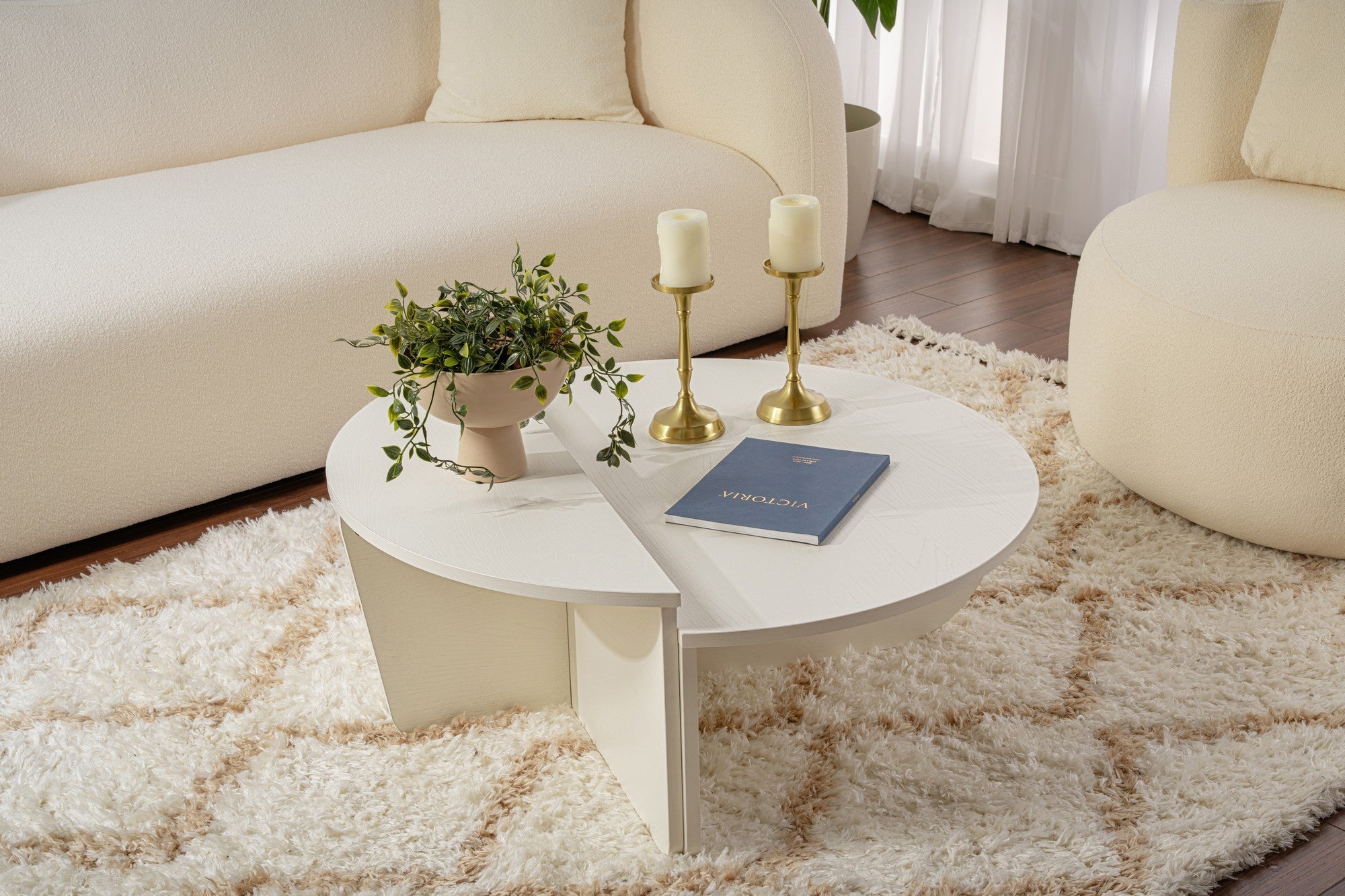 Ronde Salontafel Wood Wit 85 cm Houtlook Melamine Orin