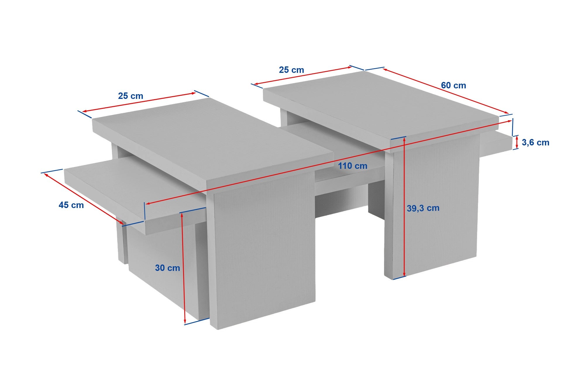 Deze salontafel is gemaakt van 100% melamine en is niet alleen stijlvol maar ook duurzaam en gaat lang mee. De dikte van 18mm zorgt voor stabiliteit en stevigheid, terwijl de royale afmetingen van 110cm breedte, 41. 5cm hoogte en 45cm diepte bieden voldoende ruimte voor al je woonkamerbenodigdheden.