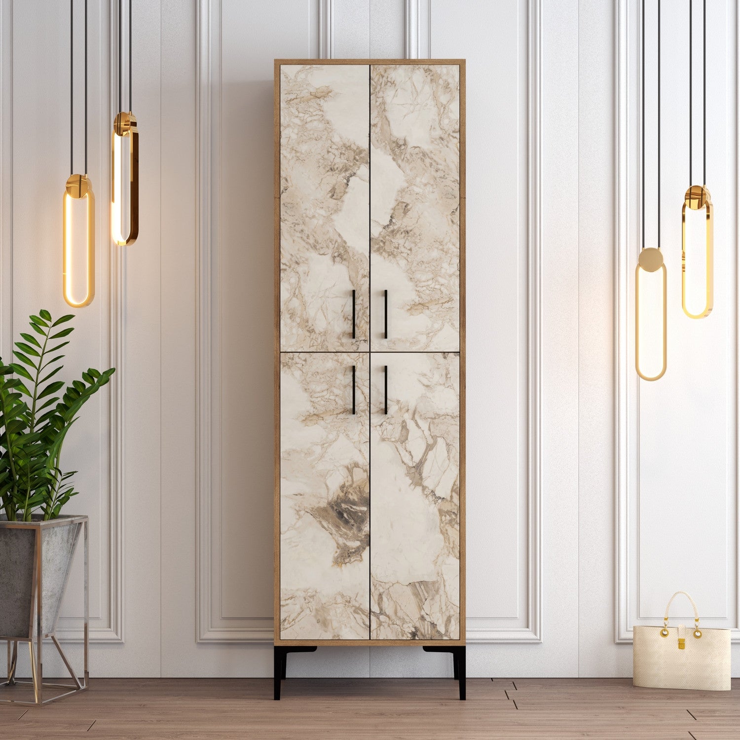 Schoenenkast Berlin Walnoot Wit Marmer Melamine 60x200x35 cm