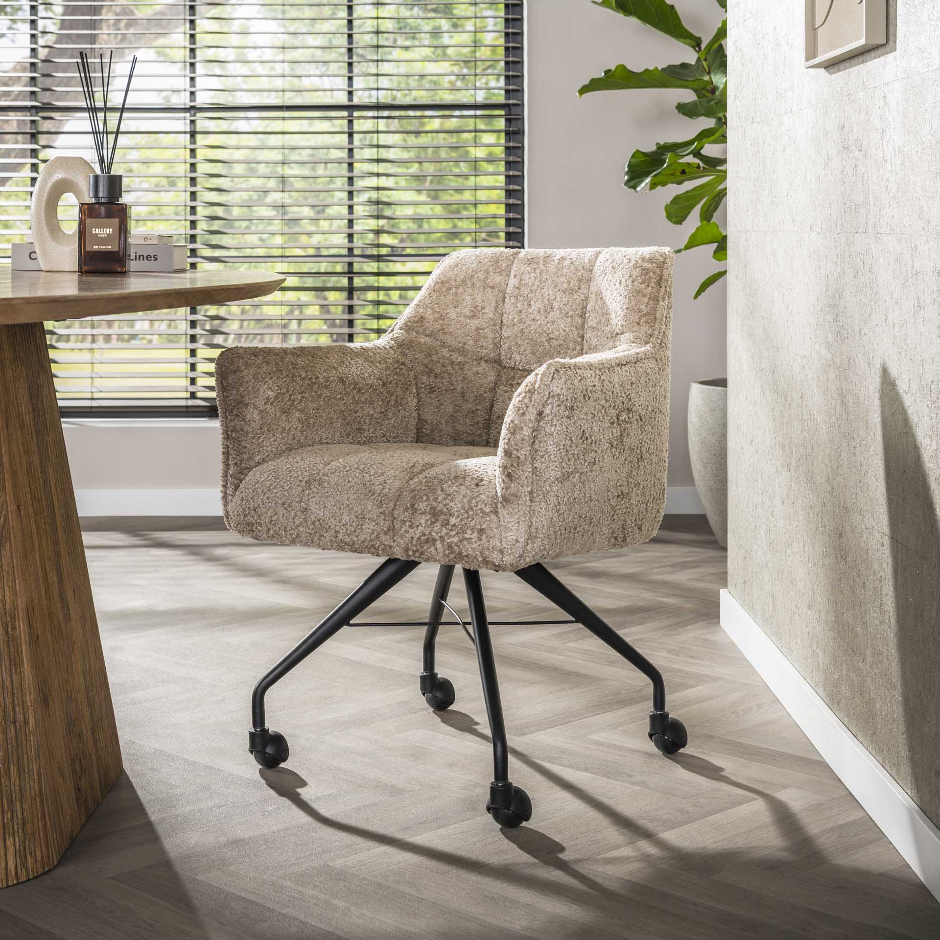 Beschrijving en specificaties van Set van 2 Eetkamerstoelen Tova Stof Alura Zand Met Wieltjes