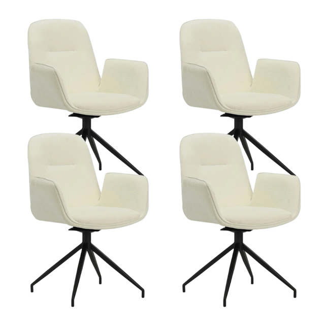 Set van 4 Draaibare Eetkamerstoelen Nela Chenille Crème - Met Armleuningen