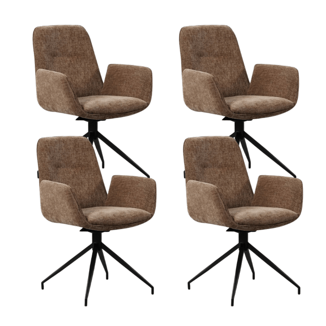 Set van 4 Draaibare Eetkamerstoelen Nela Chenille Taupe - Met Armleuningen