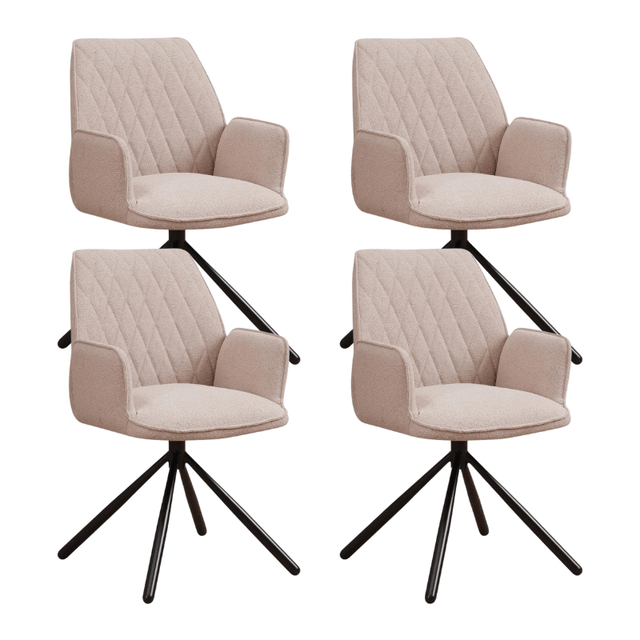 Set van 4 Draaibare Eetkamerstoelen Novan Beige Bouclé – 180° Draaibaar