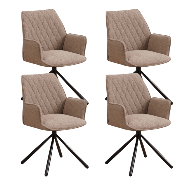 Set van 4 Draaibare Eetkamerstoelen Novan Taupe Bouclé – 180° Draaibaar