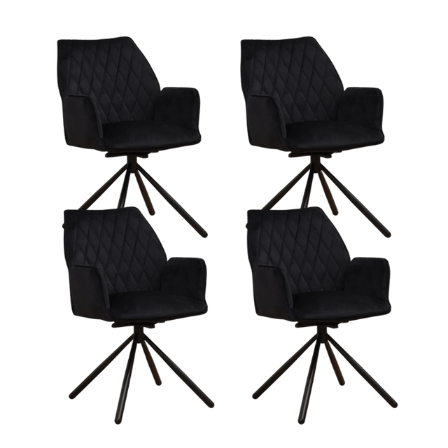 Set van 4 Draaibare Eetkamerstoelen Novan Zwart Velvet – 180° Draaibaar
