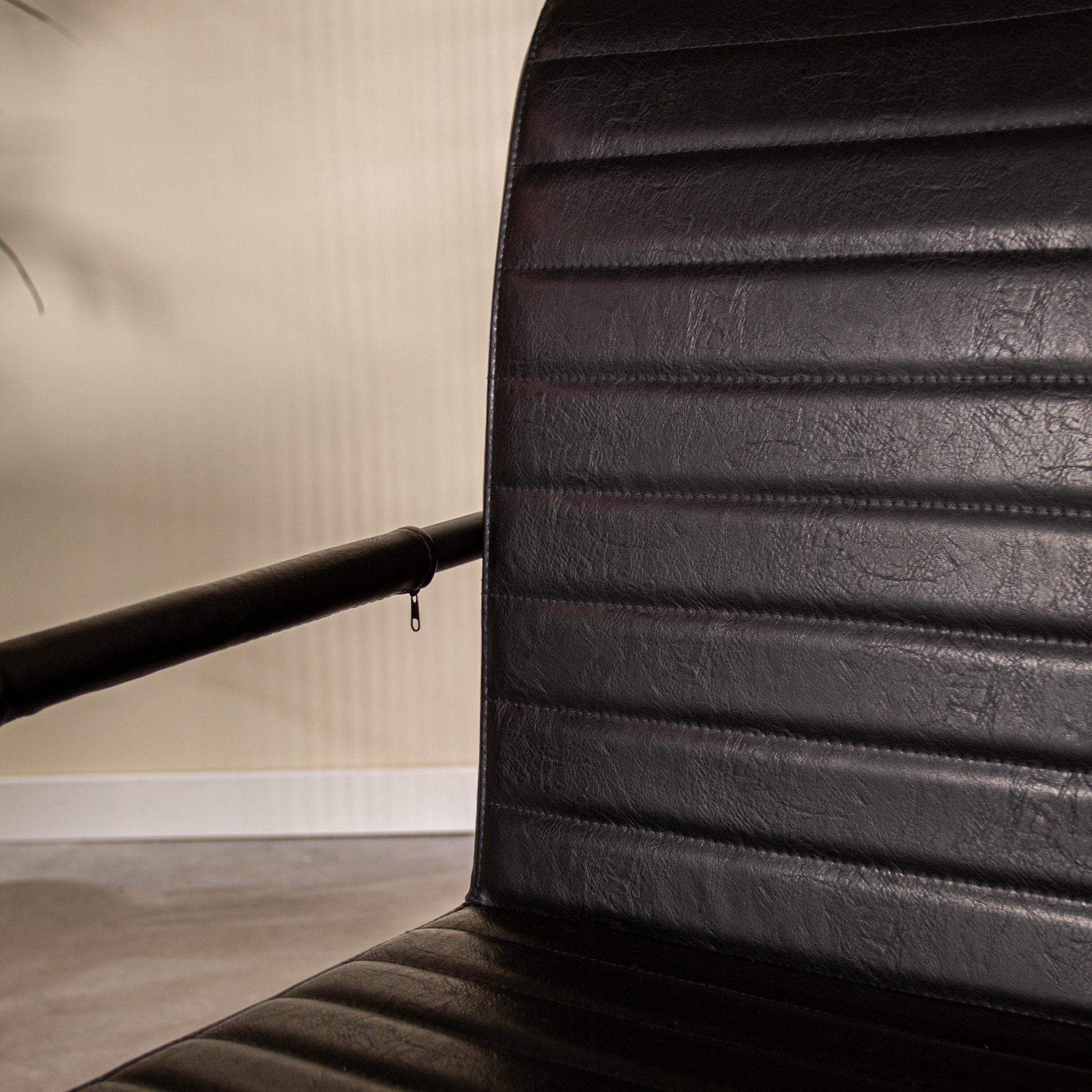 De zitting van de stoel is van ons nieuwe PU kunstleder. Ook de armleuningen zijn in dezelfde stoffering meegenomen. Ons nieuwe PU kunstleer is een materiaal dat voelt en eruitziet als leer. Het materiaal is opgebouwd uit een laag textiel dat is afgewerkt met een kunststof toplaag.