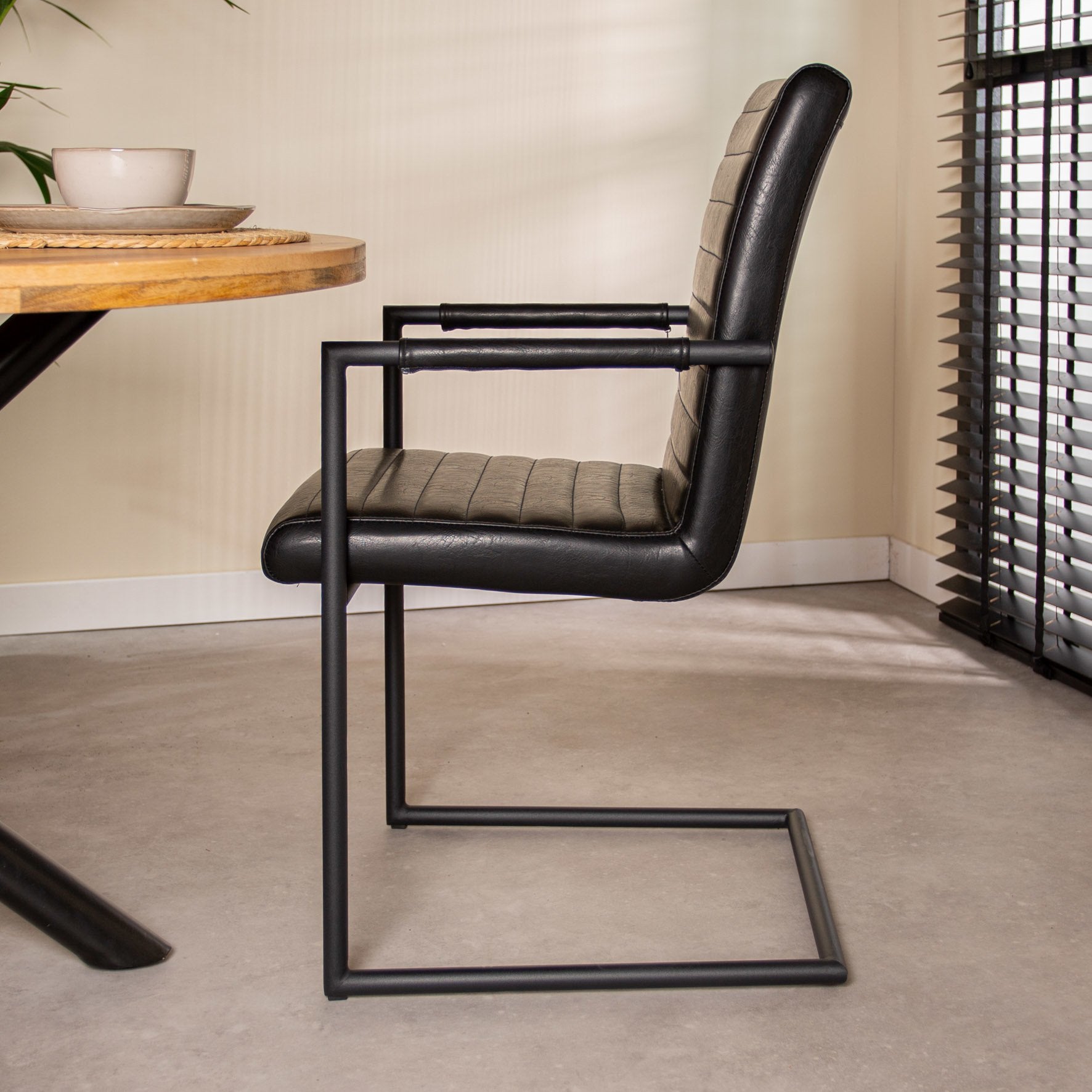 De industriële eetkamerstoel Bras zwart is een stoere eetkamerstoel welke zijn heerlijke zitcomfort dankt aan een dikke zitting en stevige rugleuning met armleuningen.