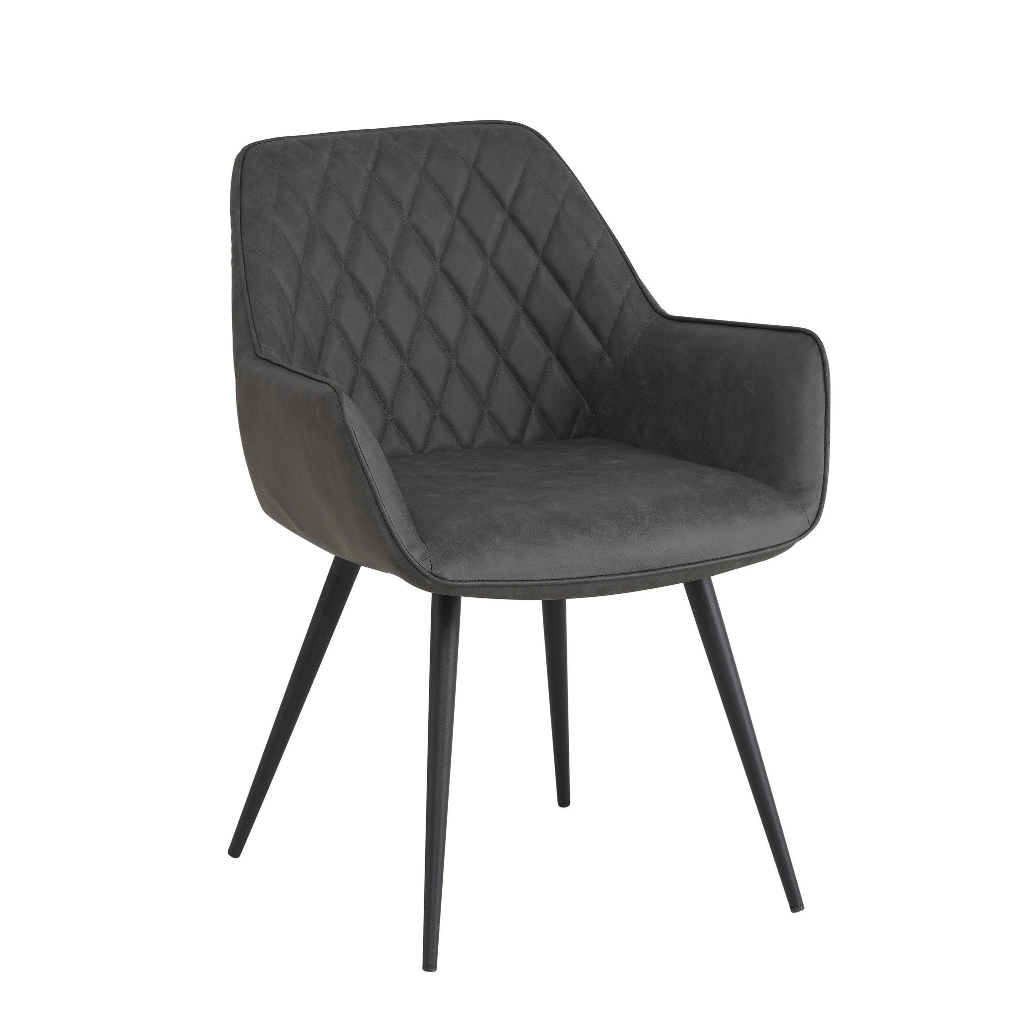 Set van 4 Industriële Eetkamerstoelen Cara Antraciet Ruitpatroon - Kunstleer - Met Armleuning
