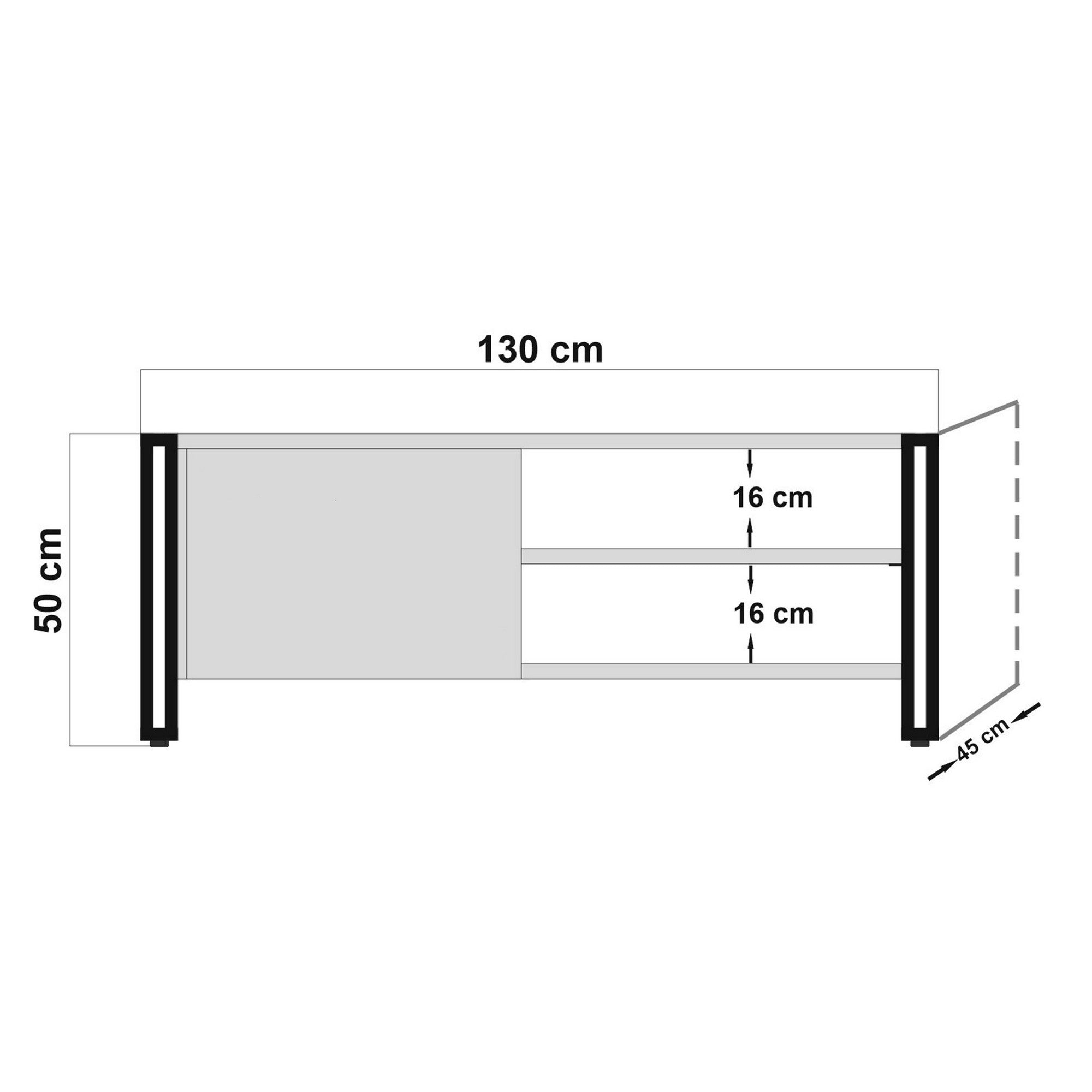 - Afmetingen TV-meubel: Breedte: 130cm, Hoogte: 50cm, Diepte: 45cm