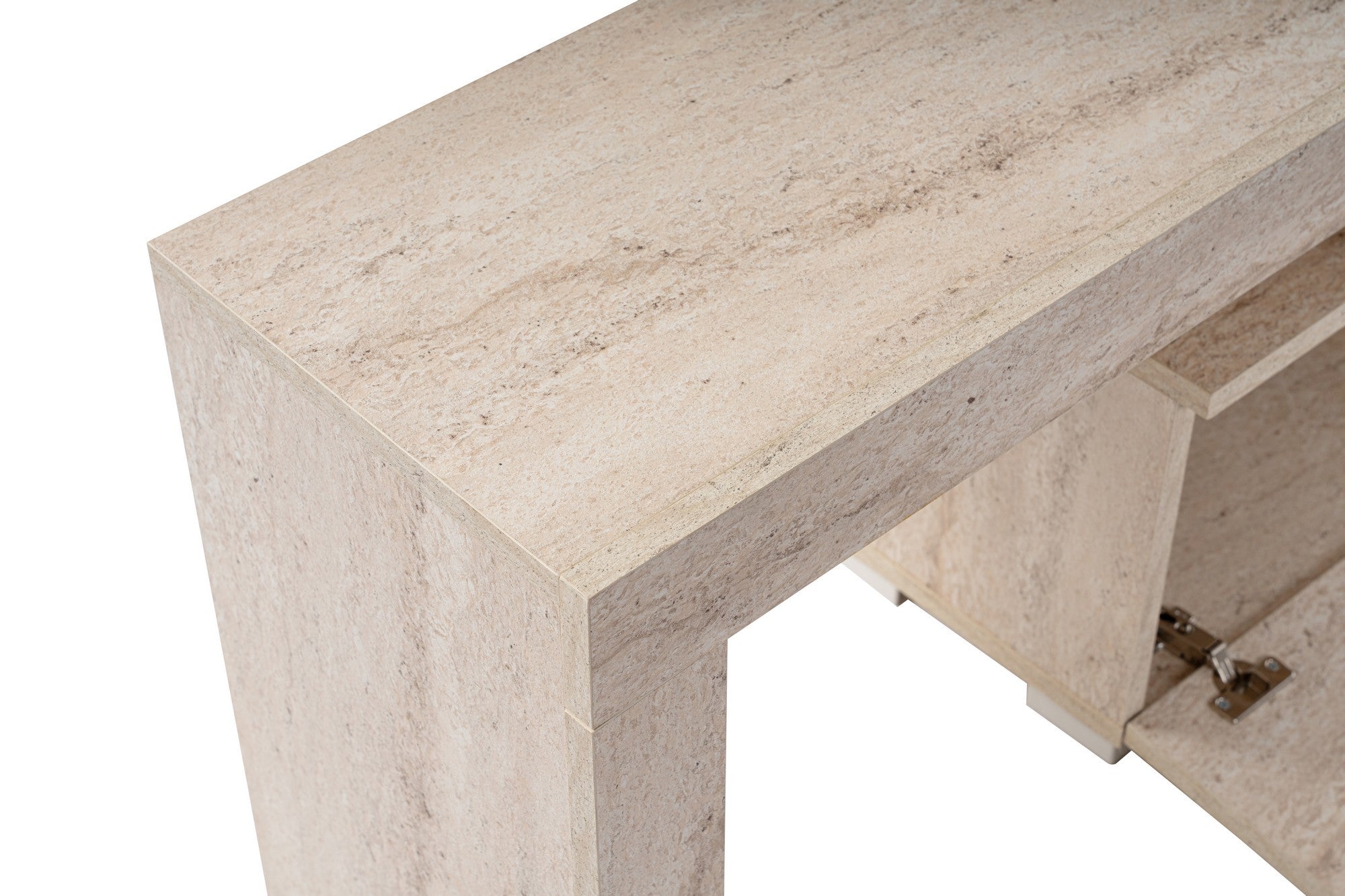 Zeg vaarwel tegen rommel en hallo tegen een strak en modern tv-meubel dat de look van je woonkamer onmiddellijk zal verbeteren. De travertin kleur voegt een vleugje luxe toe, waardoor het de perfecte aanvulling is op elke woonstijl.