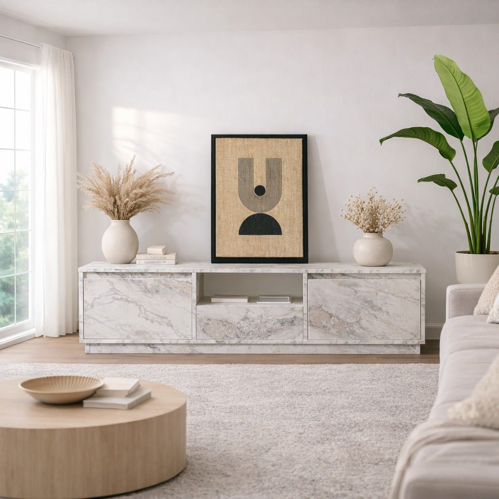 TV Meubel Marmer Melamine - drie kastjes - 160x42x29,5 cm - Flare