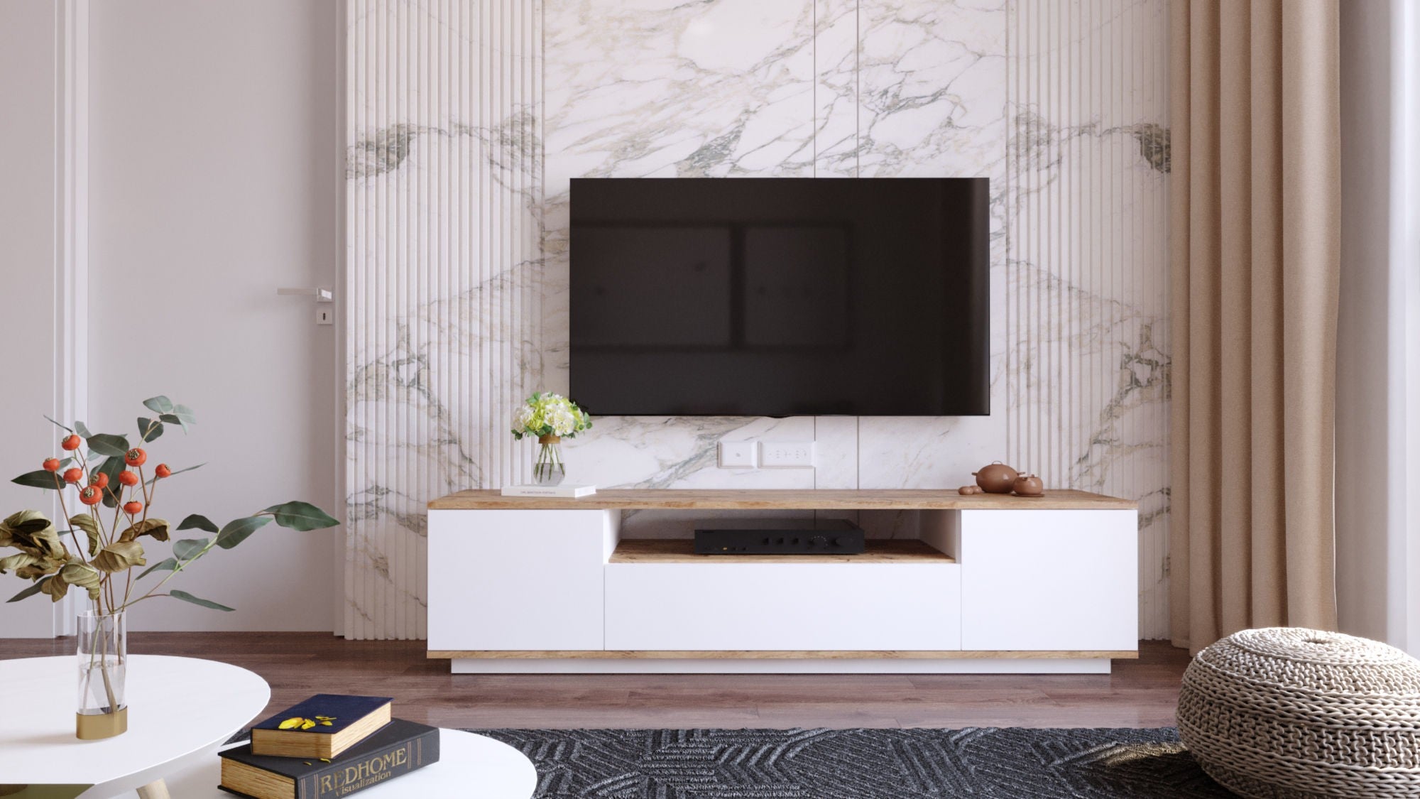 Geef je woonkamer een moderne, natuurlijke uitstraling met het TV Meubel Salerno 180x44,6x44,5 cm. Bestel nu en ervaar de perfecte combinatie van design en functionaliteit!