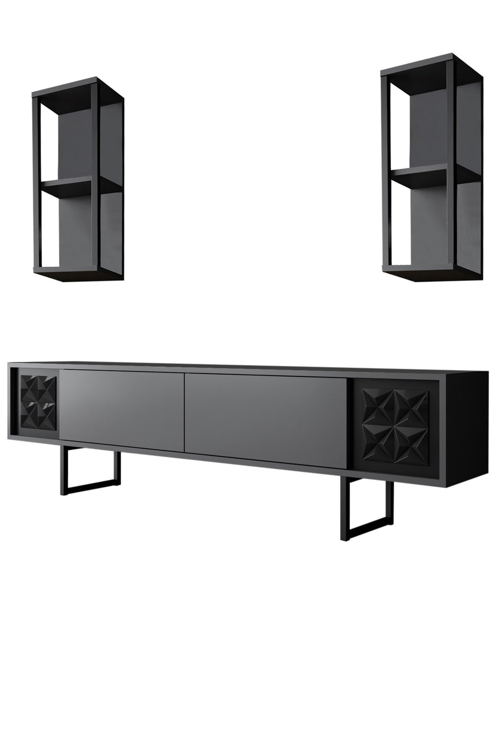 Beschrijving en specificaties van TV Meubel Set Black Line Antraciet Zwart Melamine 180x48x30 cm