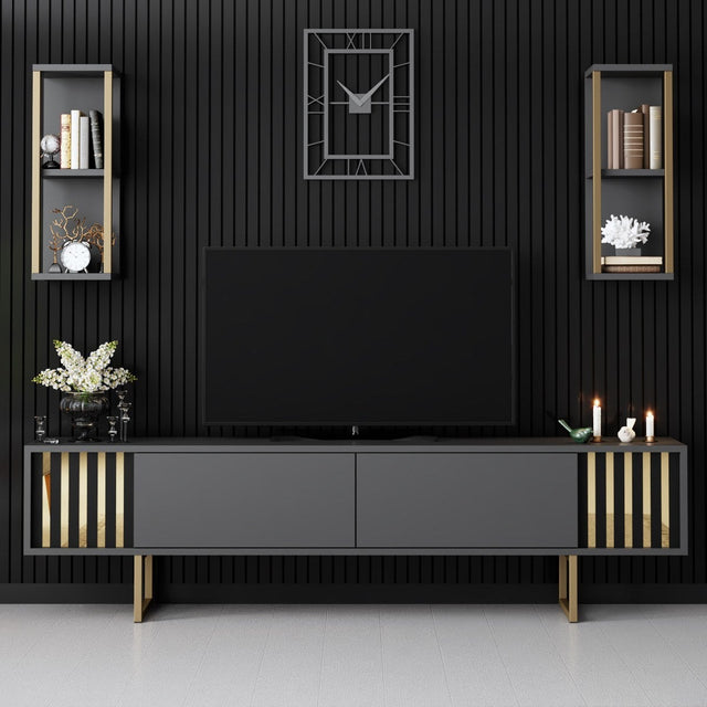 TV Meubel Set Gold Line Antraciet Zwart Melamine 180x48x30 cm