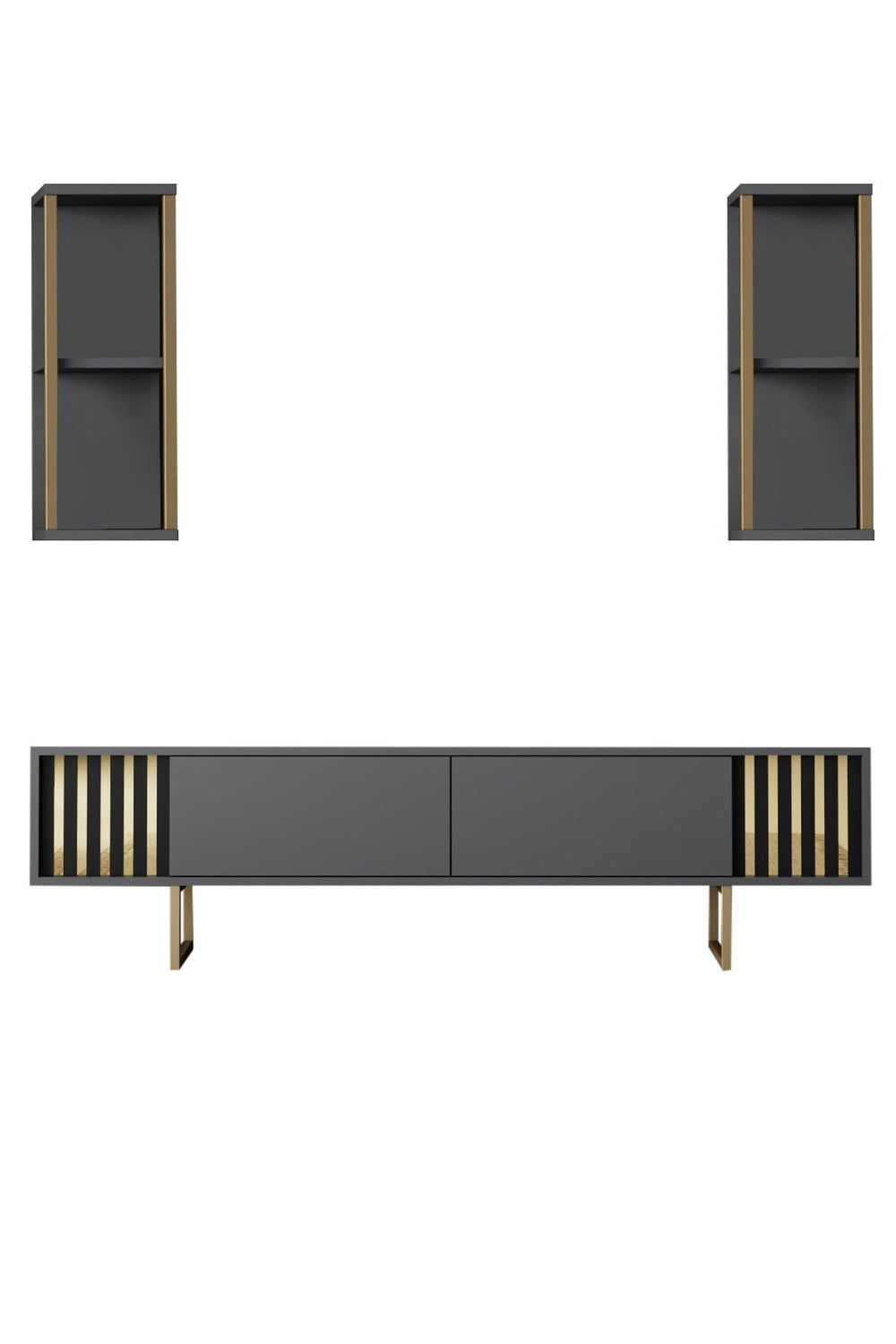Beschrijving en specificaties van TV Meubel Set Gold Line Antraciet Zwart Melamine 180x48x30 cm