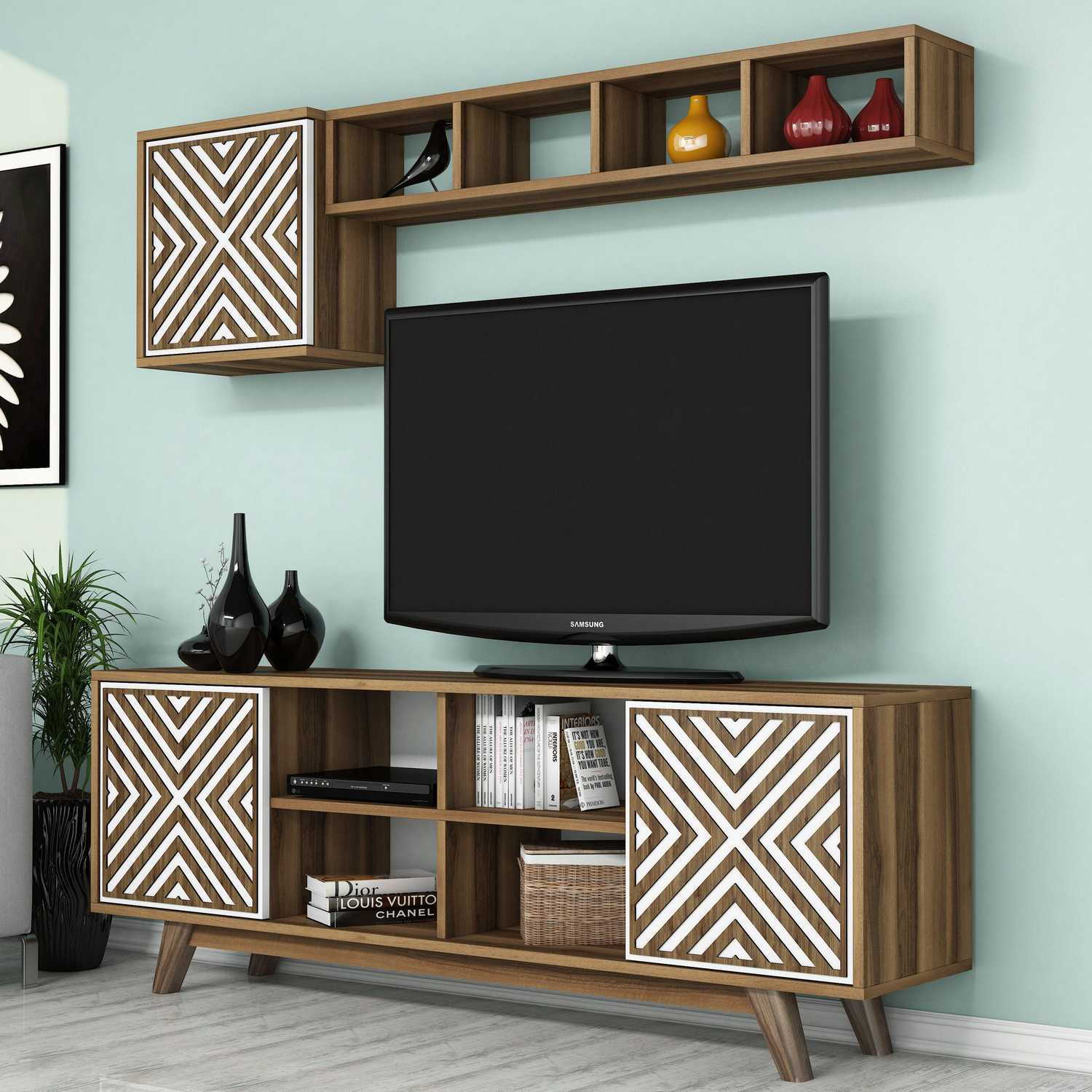 Beschrijving en specificaties van TV Meubel Set Inci Walnoot Wit Melamine 160x56,2x35 cm