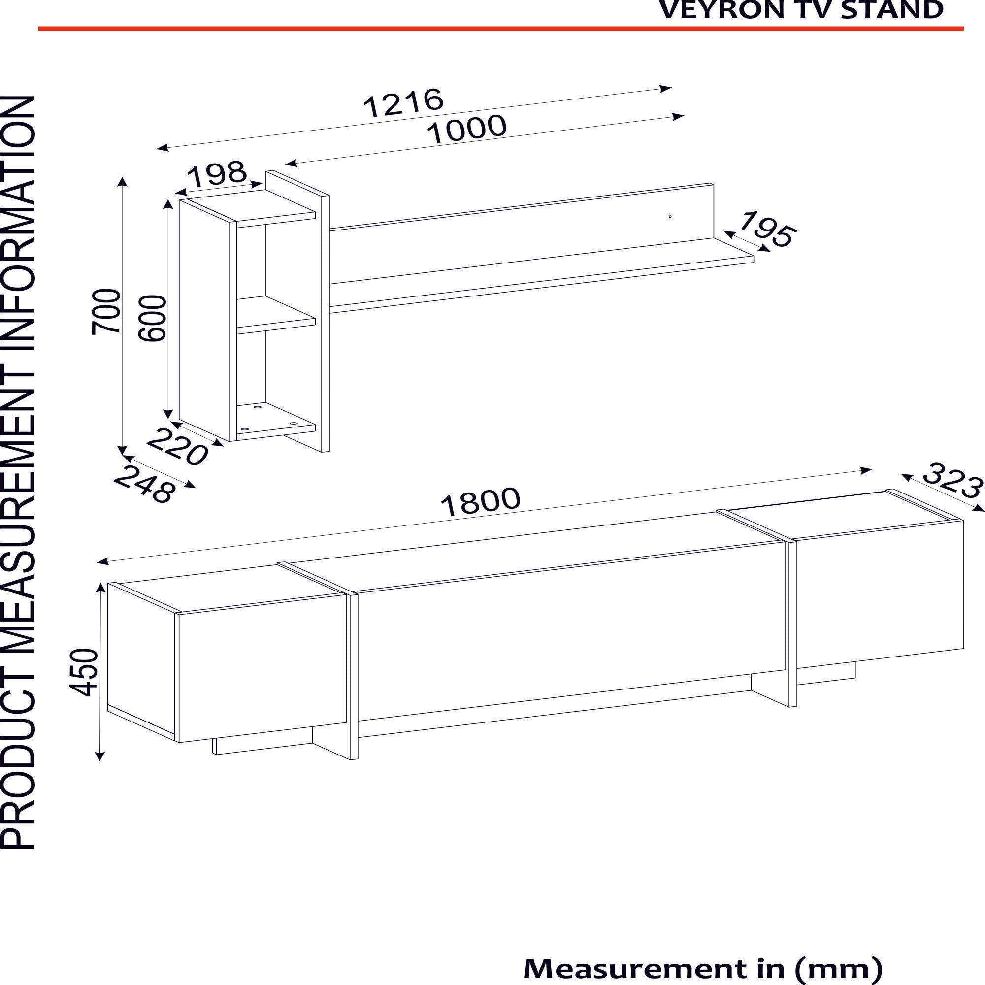 Beschrijving en specificaties van TV Meubel Set Veyron Zwart Goud Melamine 180x45x32,3 cm