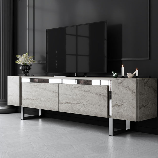 TV Meubel Travertijn Yildiz 180x50x30 - Zilver Frame