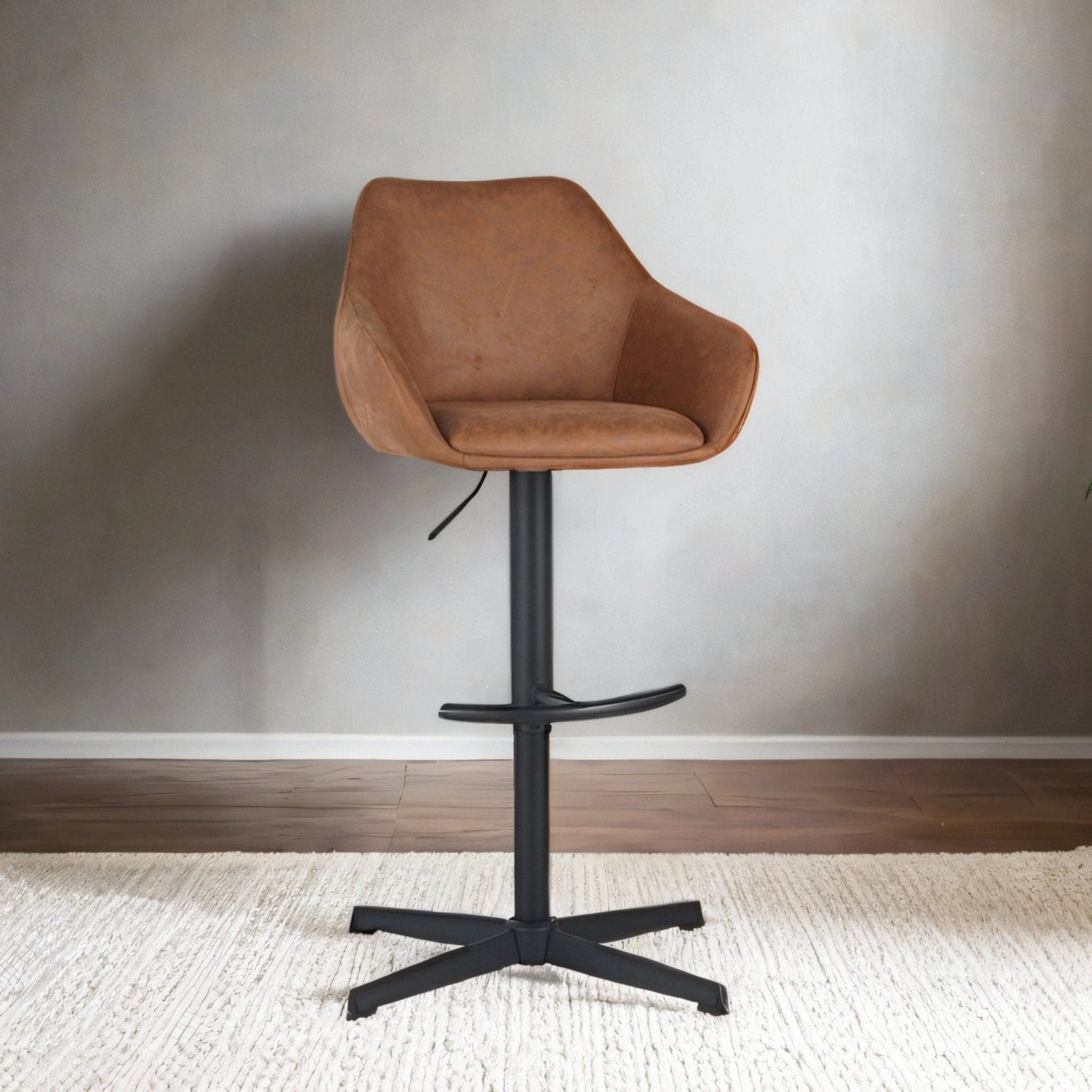 Venom Barkruk Cognac Eco-leer - Verstelbare Draaibare Barstoel met Armleuning