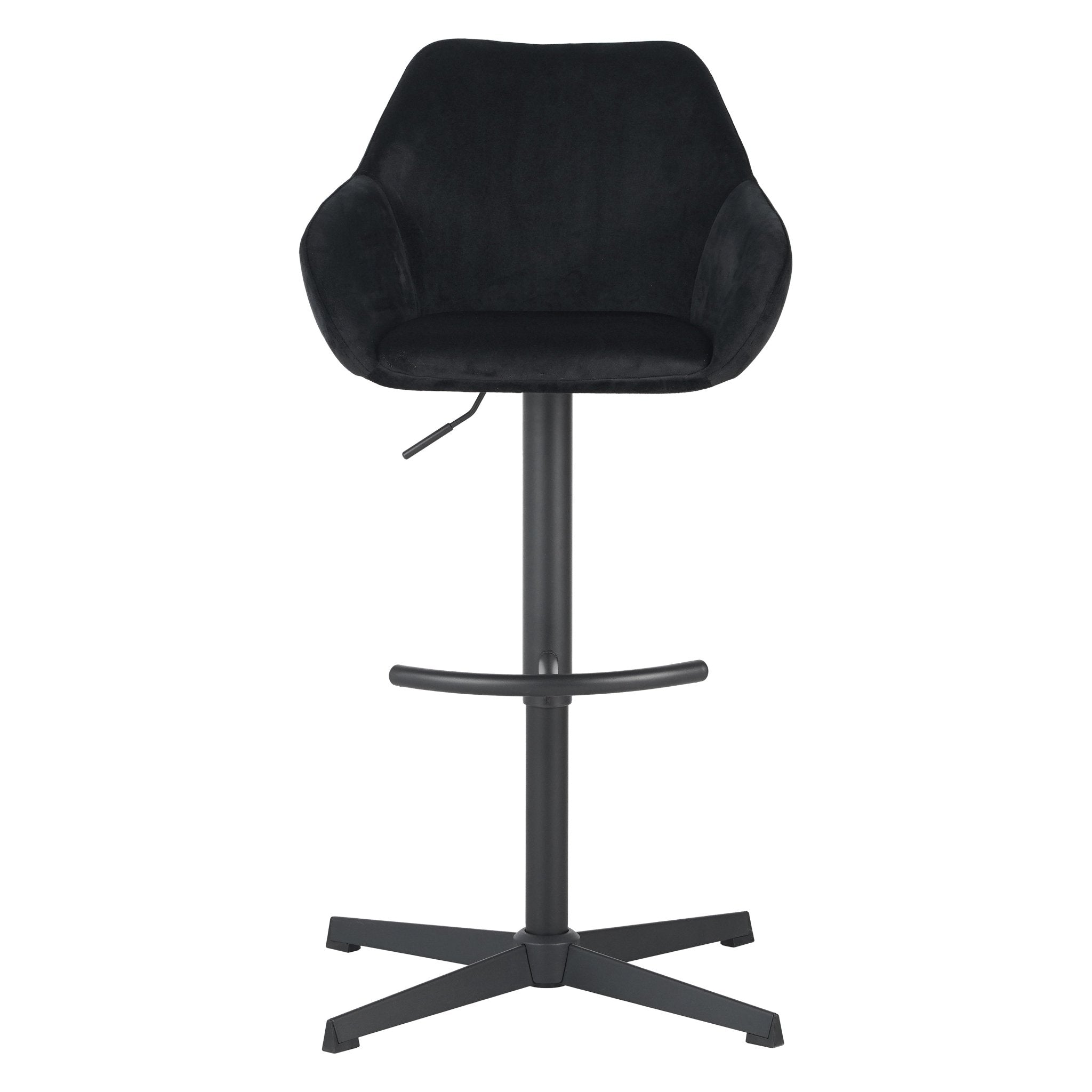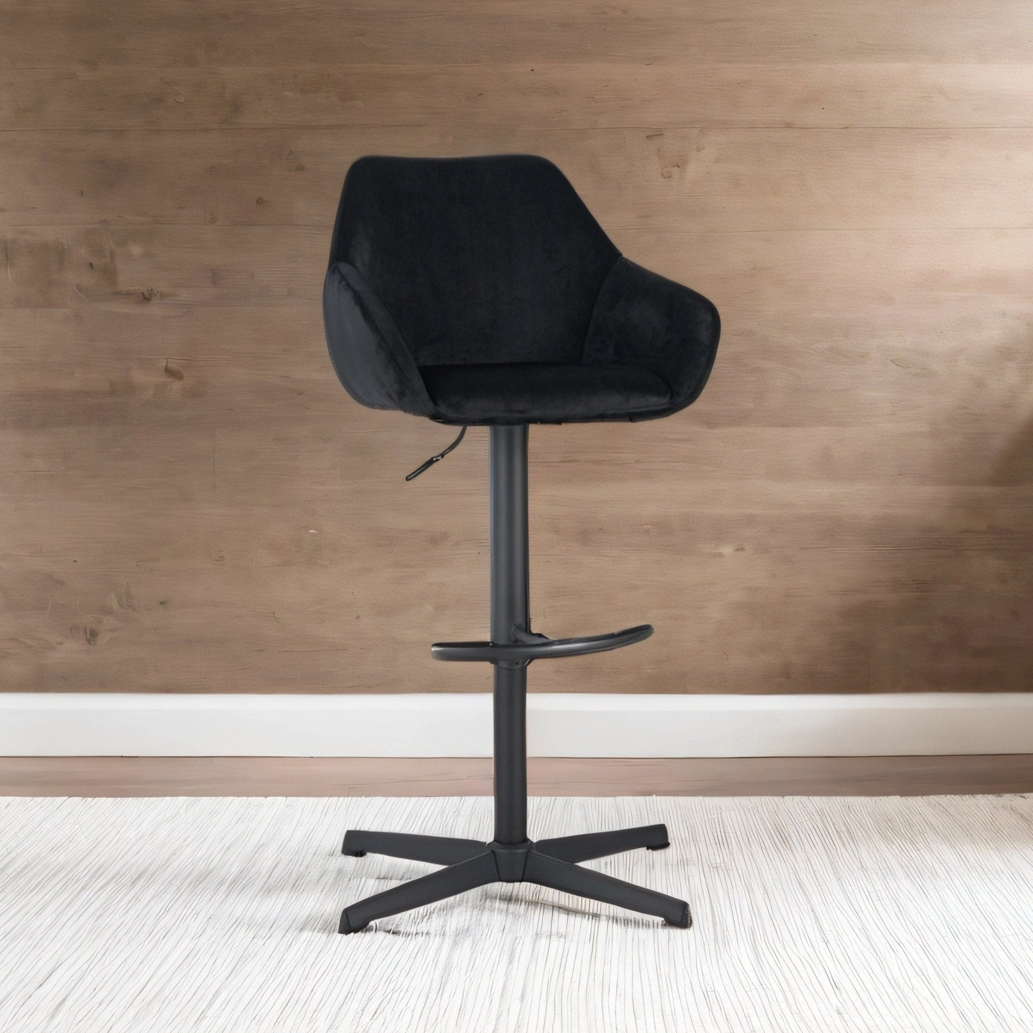 Venom Barkruk Zwart Velvet - Verstelbare Draaibare Barstoel met Armleuning