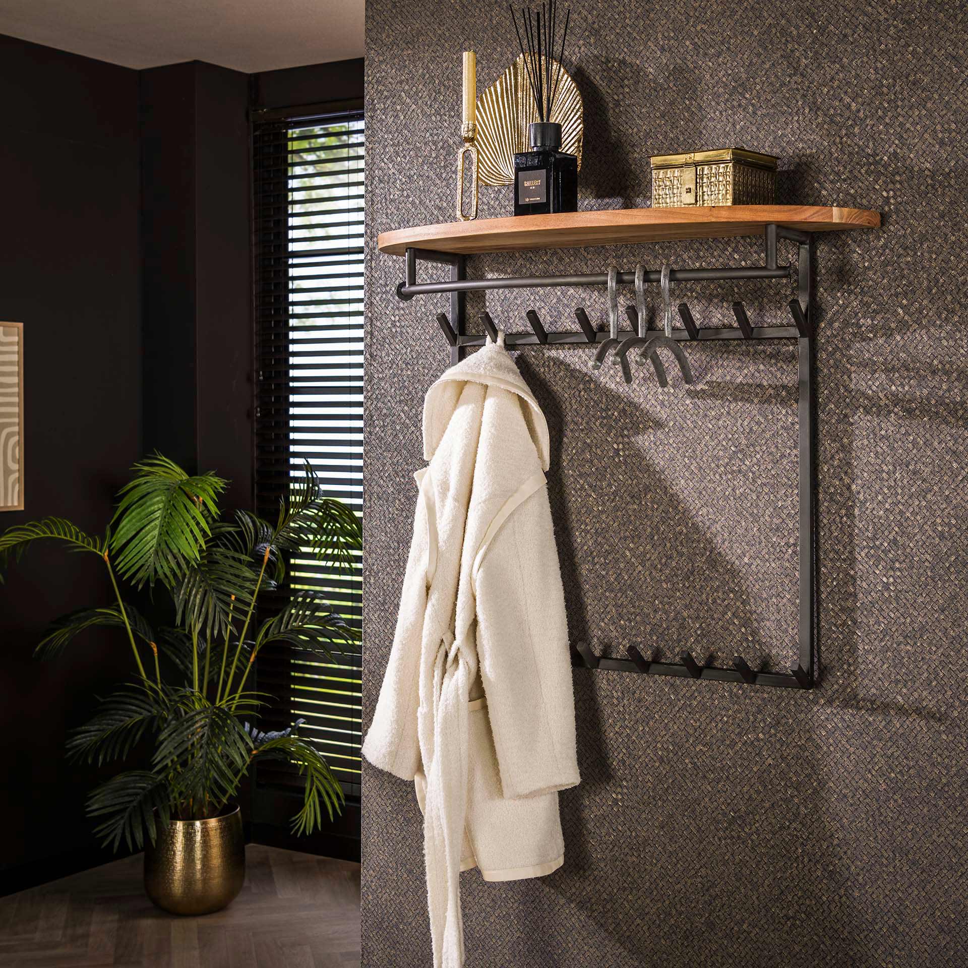Gemaakt van hoogwaardig metaal, is de Kapstok River niet alleen stijlvol maar ook duurzaam en stevig. De robuuste haken en stevige plank garanderen dat je spullen veilig en netjes opgeborgen blijven.